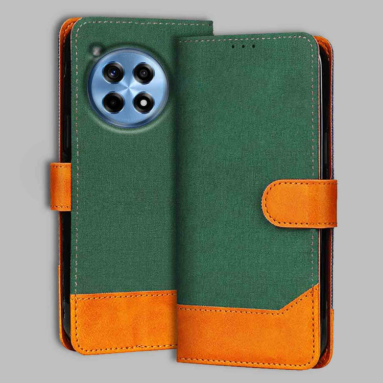 OnePlus 12R 5G Canvas & Suede Flip Cover | Dual Color | Stylish & Durable - Green