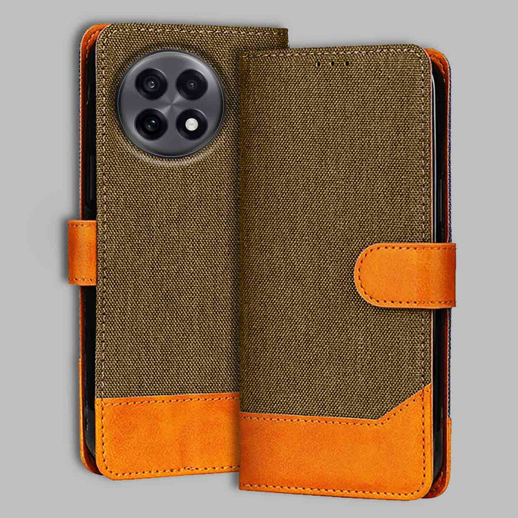 OnePlus 13R 5G Denim Leather Flip Cover | Dual Color | Sleek & Durable - Dark Brown
