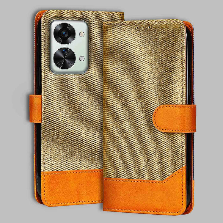 OnePlus Nord 2T Dual Color Flip Cover | Denim & Leather - Light Brown