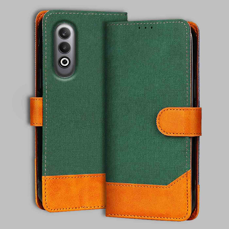 OnePlus Nord CE 4 Canvas & Suede Flip Cover | Dual Color | Stylish & Durable - Green