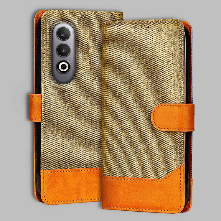 OnePlus Nord CE 4 Dual Color Flip Cover | Denim & Leather - Light Brown