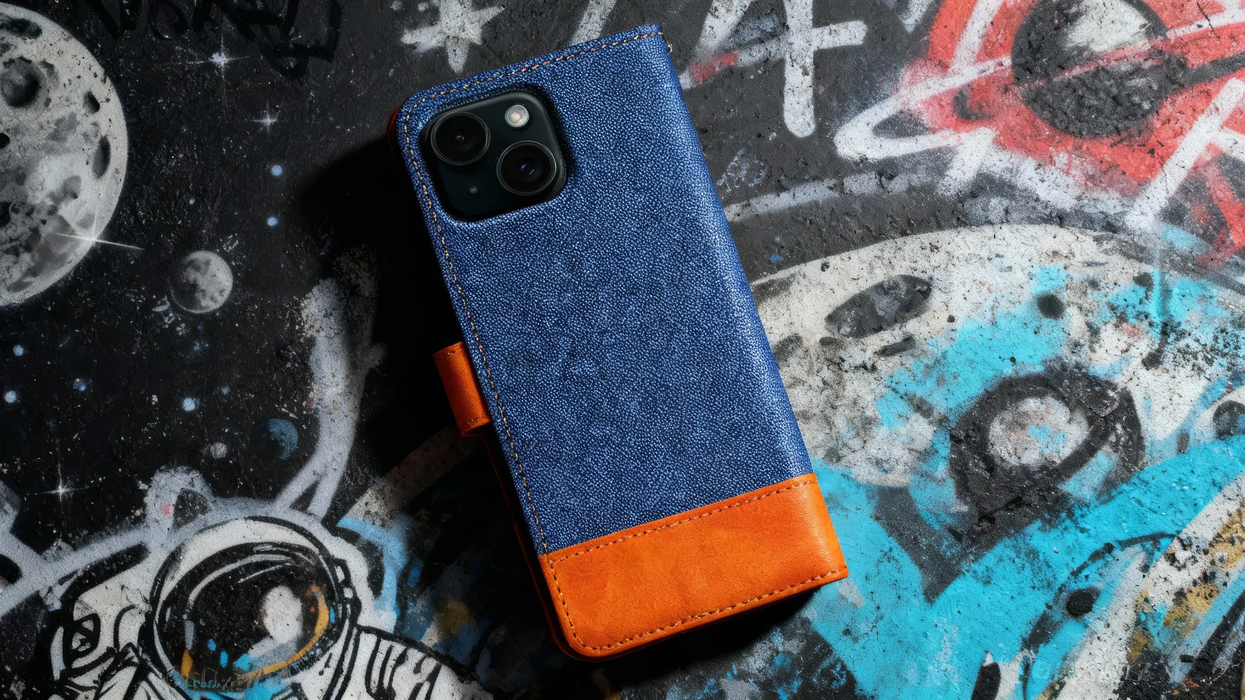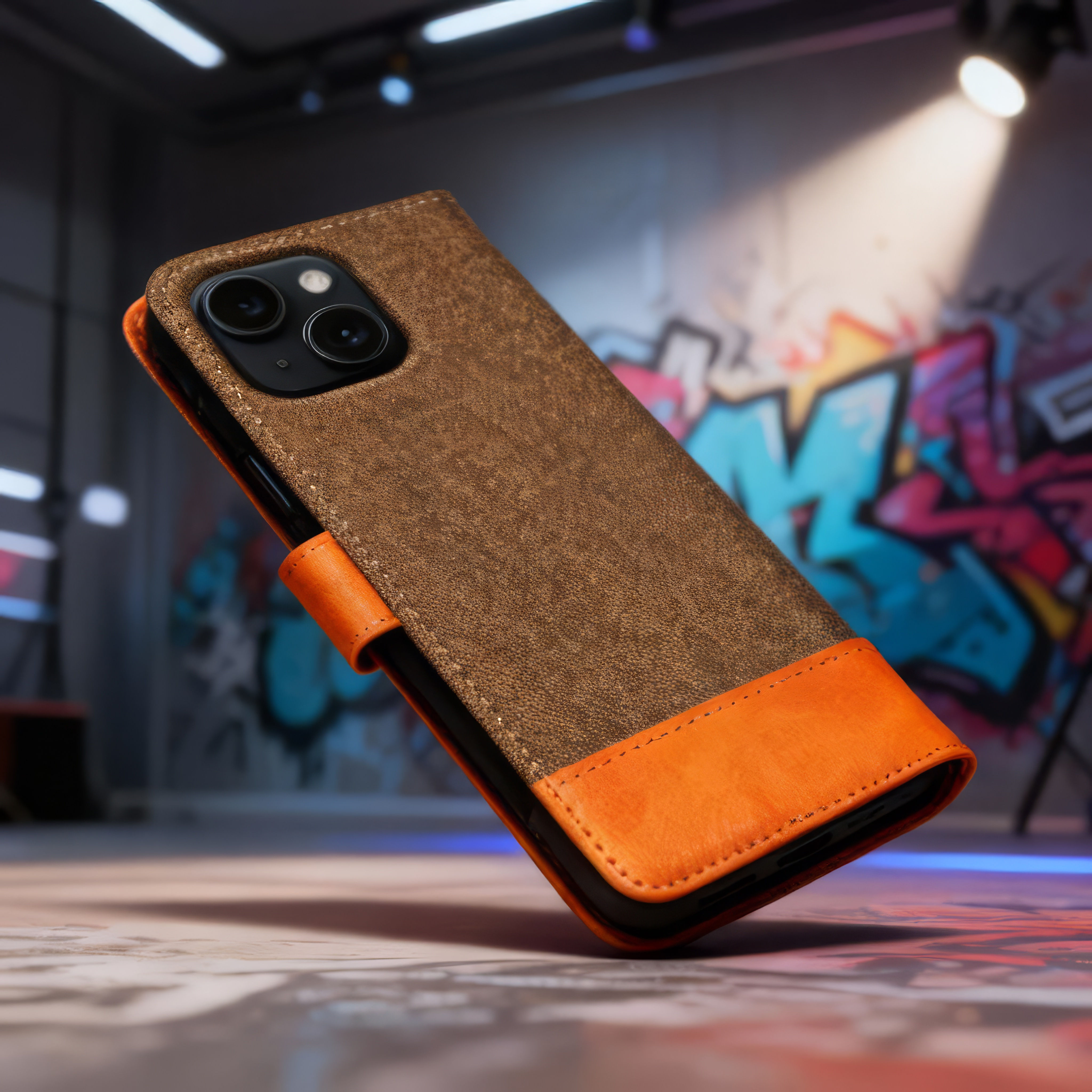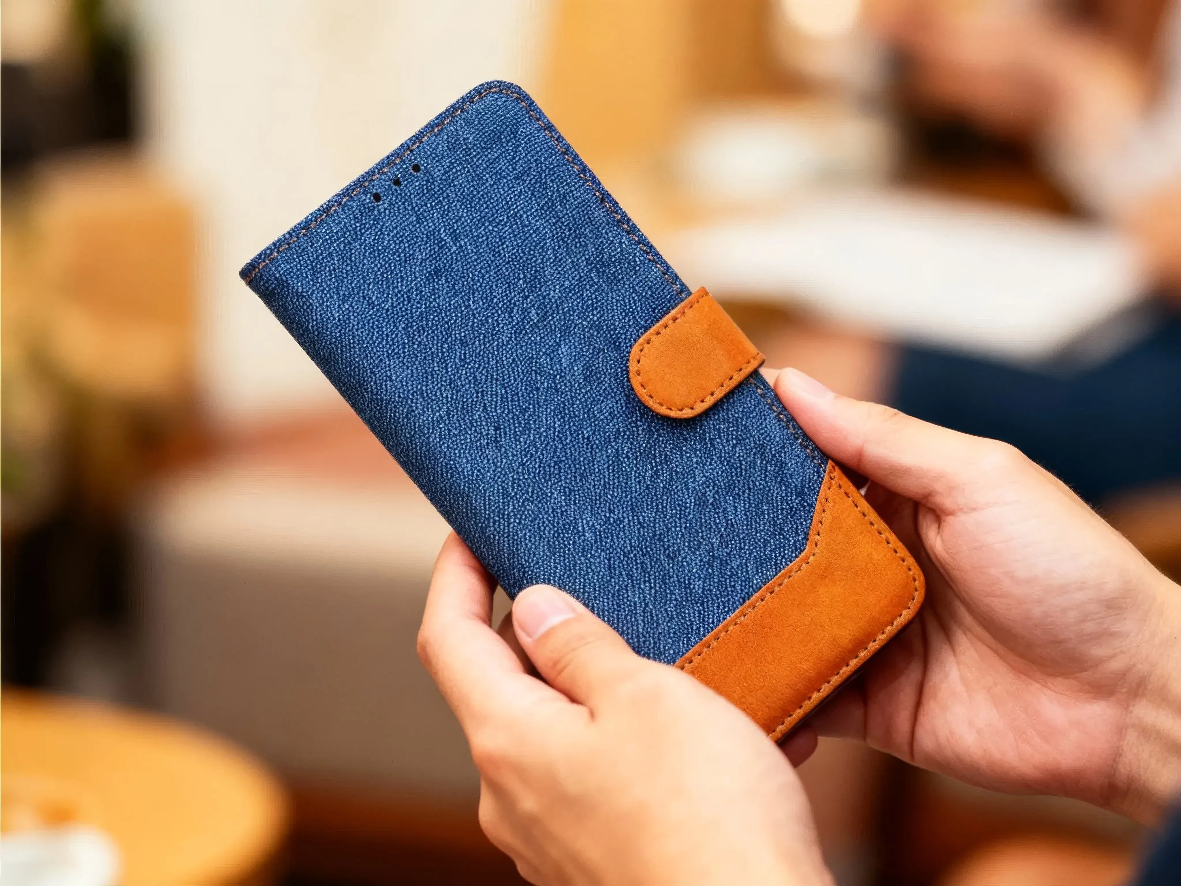 This denim-and-vegan-leather flip cover wraps your phone in full‑body defense. The magnetic lock keeps the folio shut, shielding screen and cameras from scratches, bumps, and daily wear—so your device stays crack‑free and looking new.