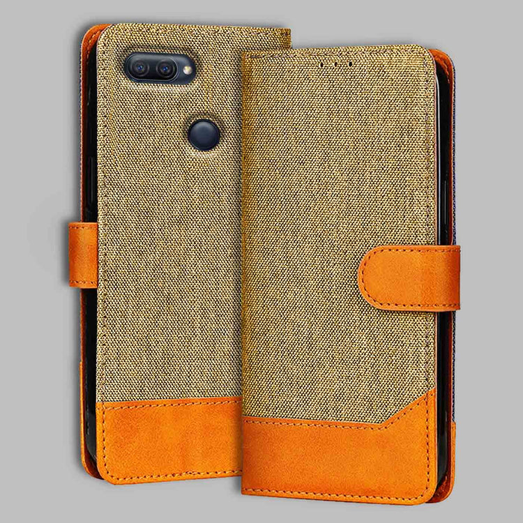 Oppo A12 Dual Color Flip Cover | Denim & Leather - Light Brown