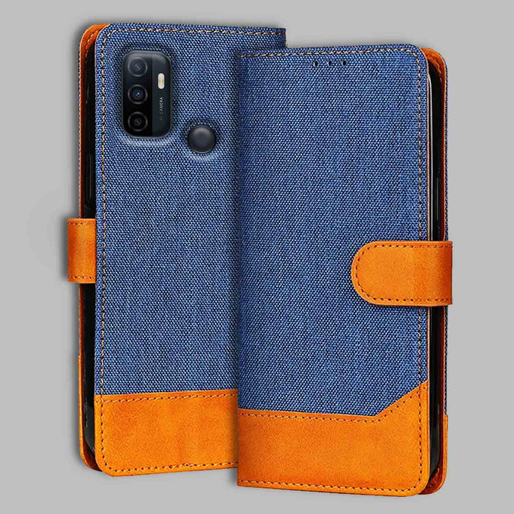 Upgrade your Oppo A53 with this stylish & durable denim and vegan leather flip cover!