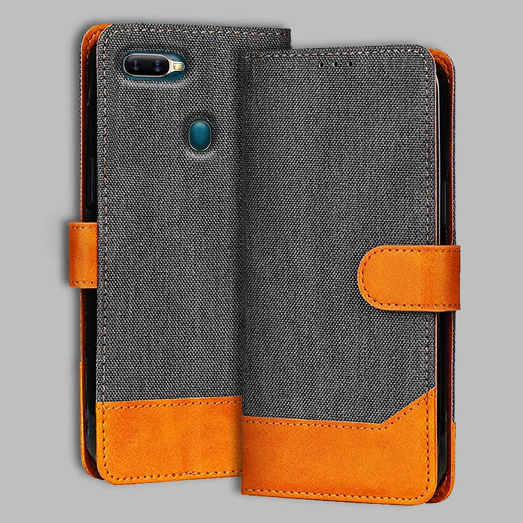 Oppo A5S Denim Leather Flip Cover | Dual Color | Sleek & Durable - Grey