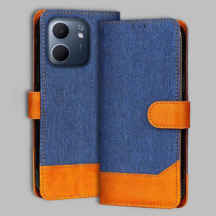 Oppo A5X 5G Denim Leather Flip Cover | Dual Color | Sleek & Durable - Blue