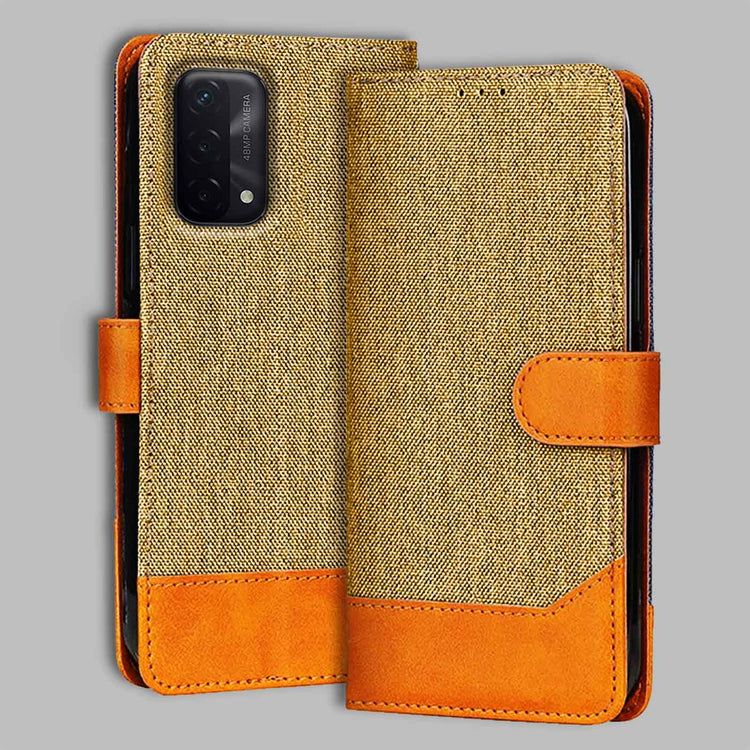 Oppo A74 5G Dual Color Flip Cover | Denim & Leather - Light Brown