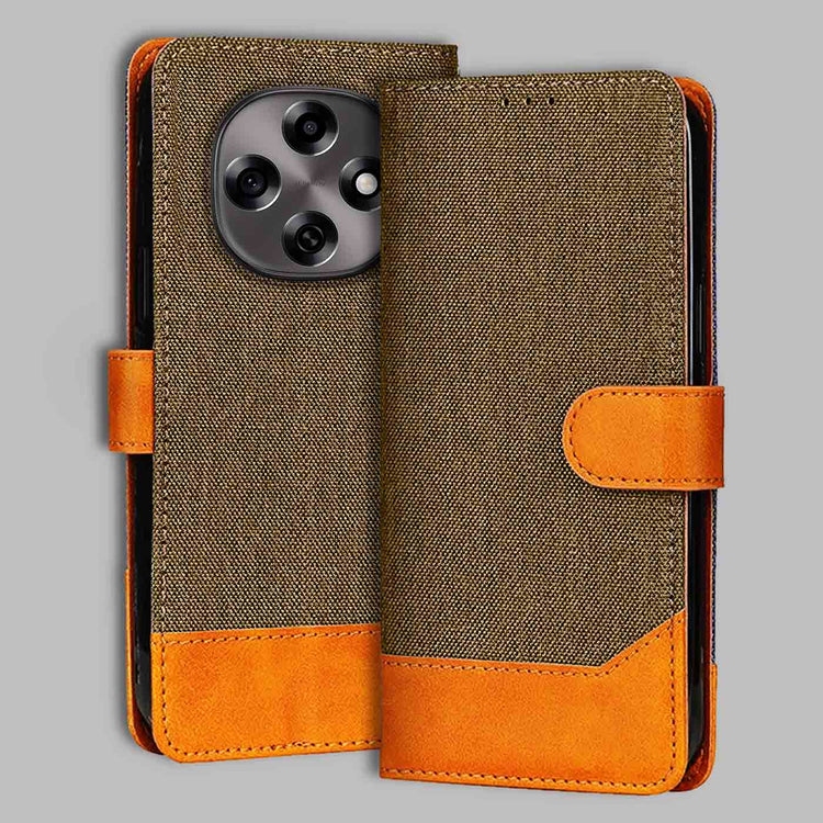 Oppo F31 Pro 5G Dual Color Flip Cover | Denim & Leather - Dark Brown