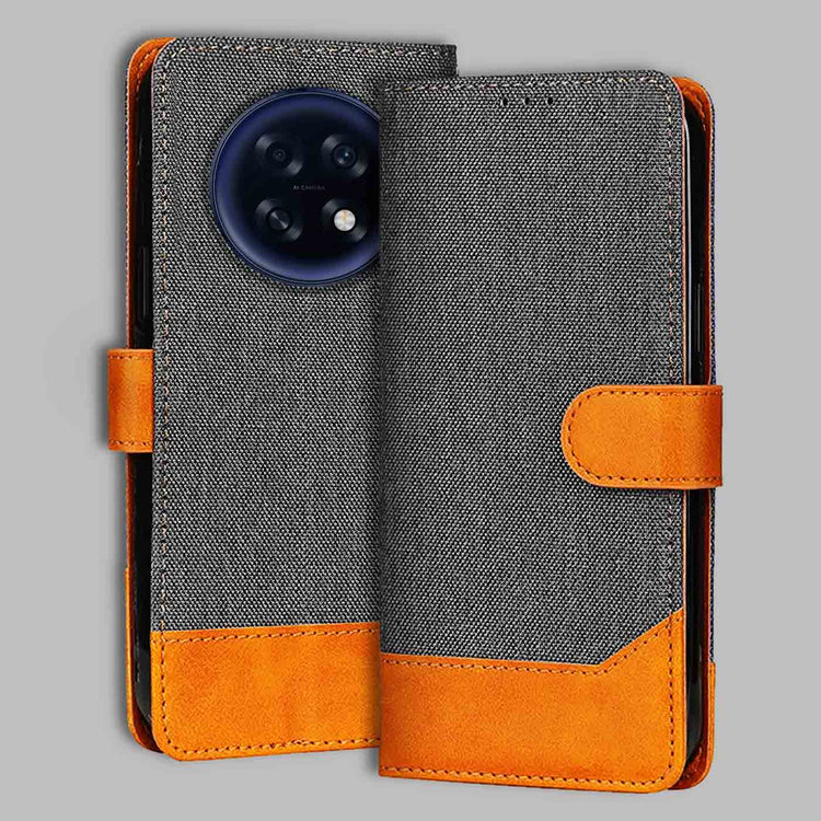 Oppo F31 Pro Plus 5G Denim Leather Flip Cover | Dual Color | Sleek & Durable - Grey