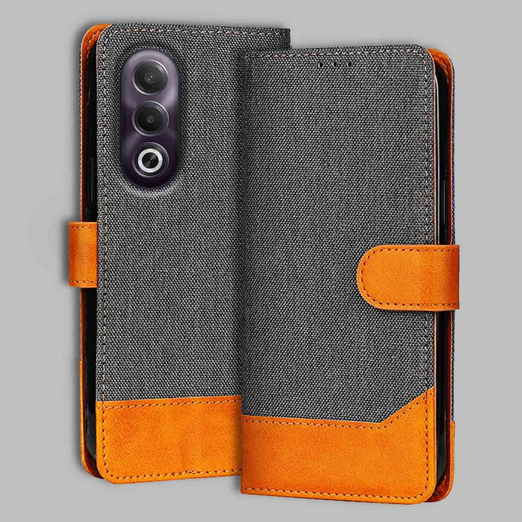 Oppo K12X 5G Dual Color Flip Cover | Denim & Leather - Grey