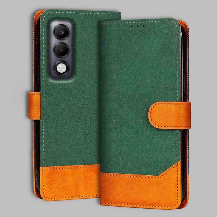 Oppo K13X 5G Canvas & Suede Flip Cover | Dual Color | Stylish & Durable - Green