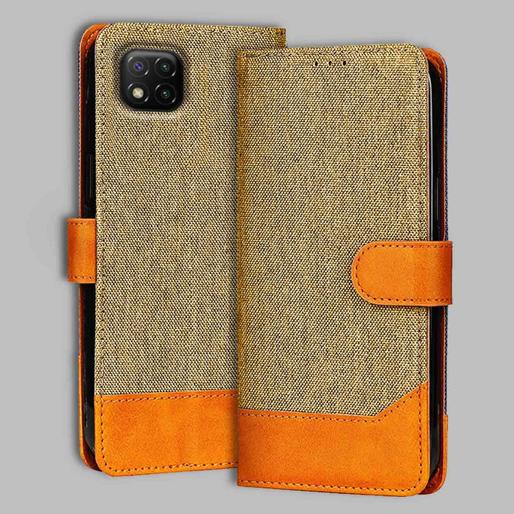 Poco C3 Dual Color Flip Cover | Denim & Leather - Light Brown