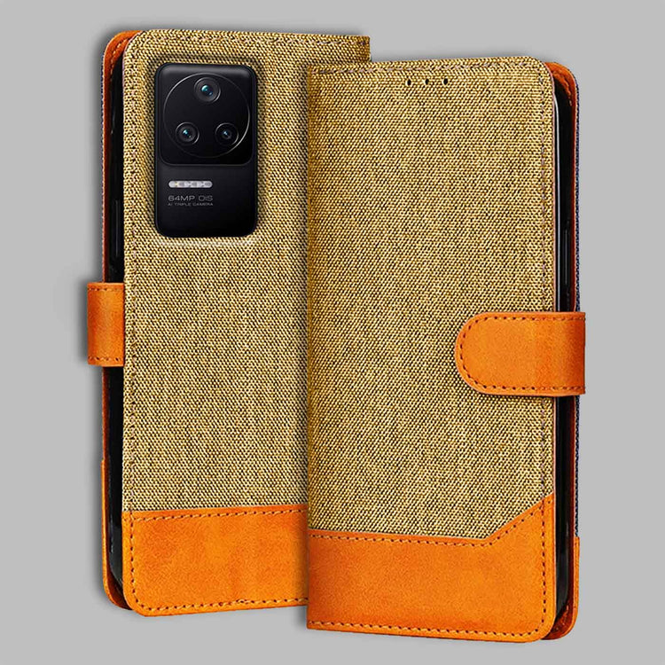 Poco F4 5G Dual Color Flip Cover | Denim & Leather - Light Brown