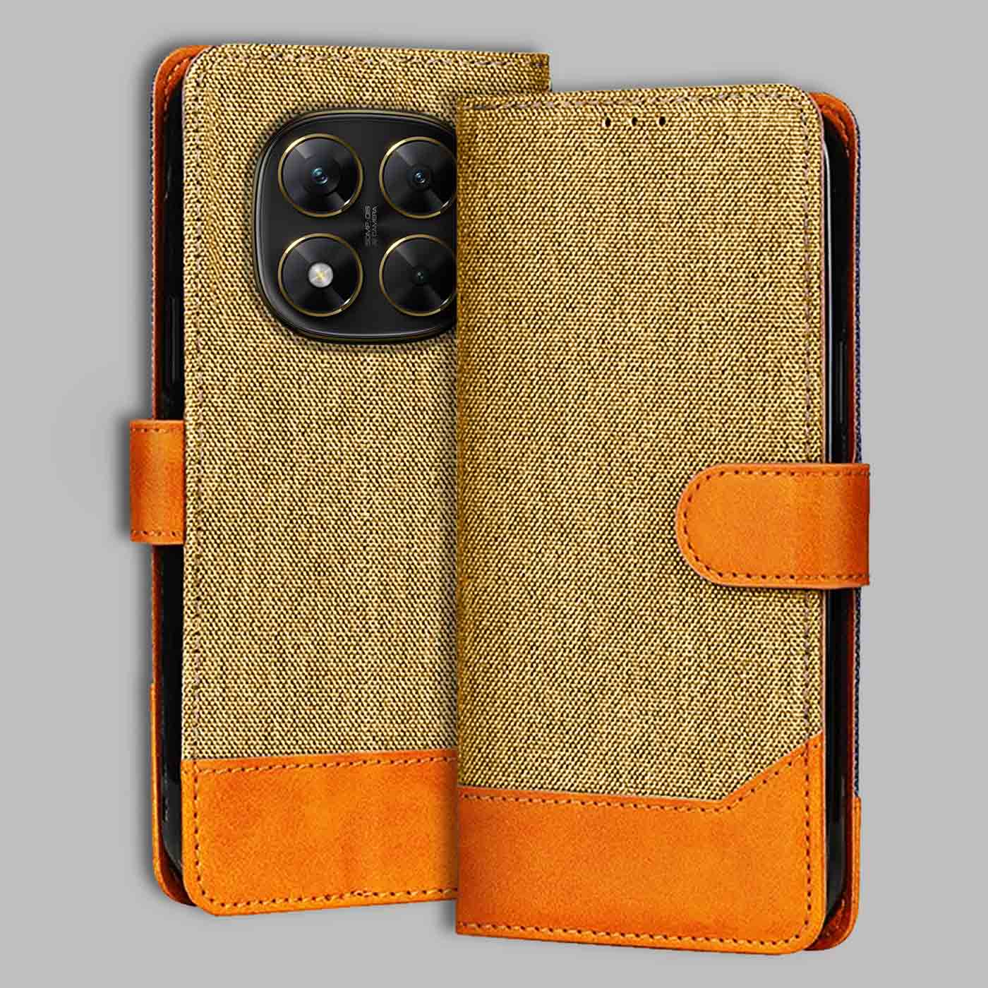 Poco X7 5G Dual Color Flip Cover | Denim & Leather - Light Brown