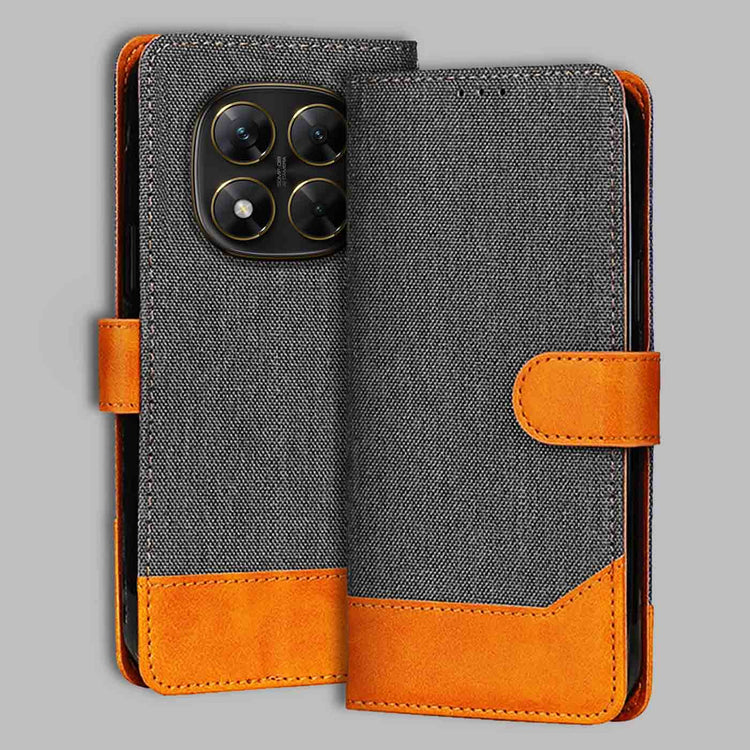 Poco X7 5G Dual-Tone Denim & Leather Flip Cover - Grey