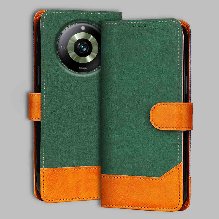 Realme 11 Pro 5G Canvas & Suede Flip Cover | Dual Color | Stylish & Durable - Green
