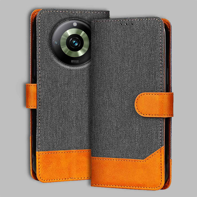 Realme 11 Pro Plus 5G Denim Leather Flip Cover | Dual Color | Sleek & Durable - Grey