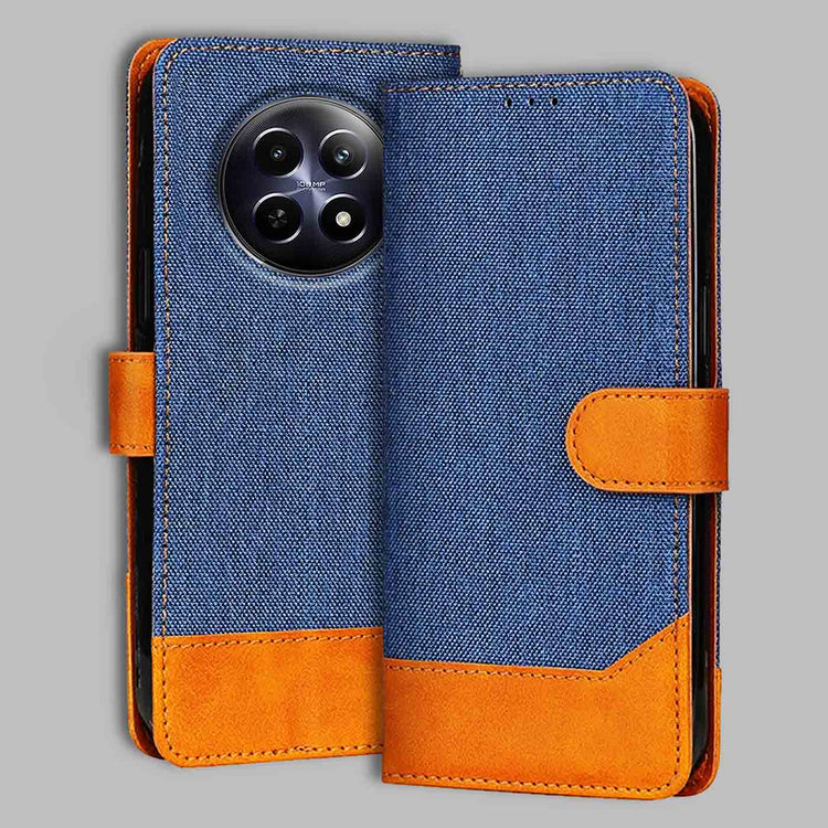Realme 12 5G Denim Leather Flip Cover | Dual Color | Sleek & Durable - Blue
