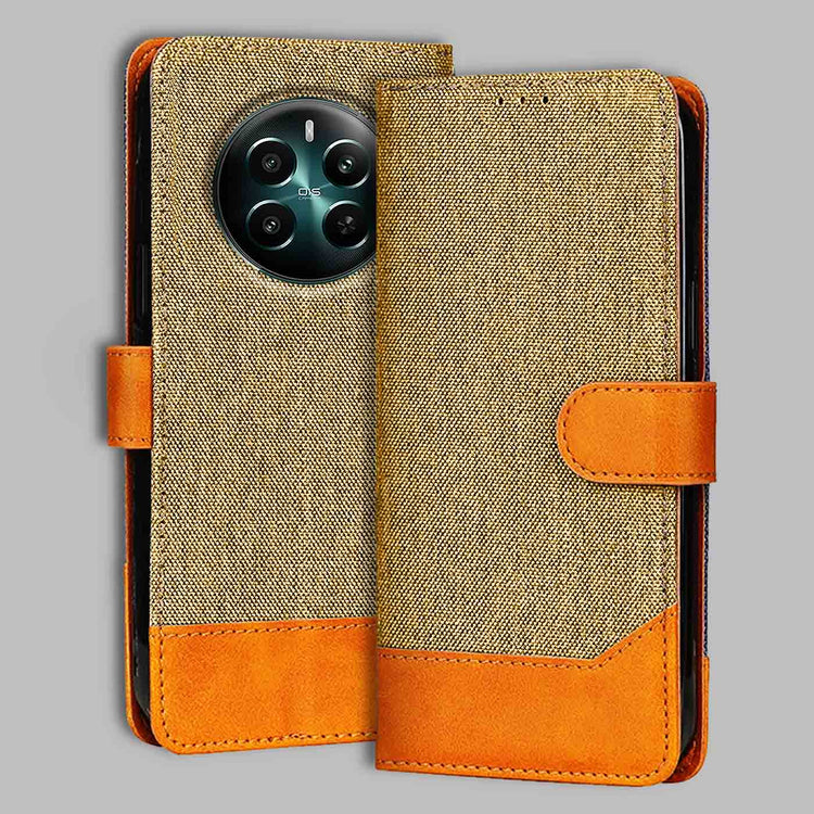 Realme 12 Plus 5G Dual Color Flip Cover | Denim & Leather - Light Brown