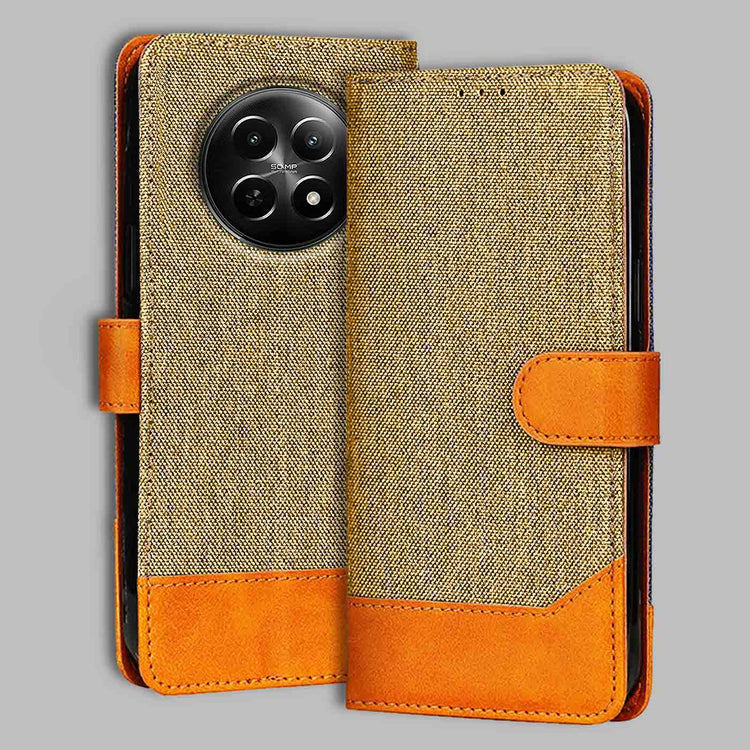 Realme 12X Dual Color Flip Cover | Denim & Leather - Light Brown