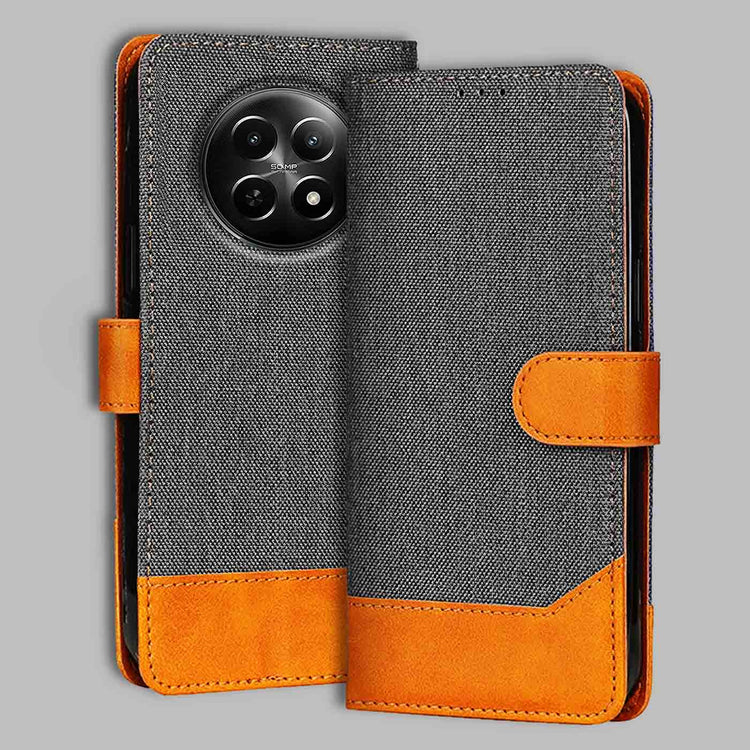 Realme 12X Dual-Tone Denim & Leather Flip Cover - Grey