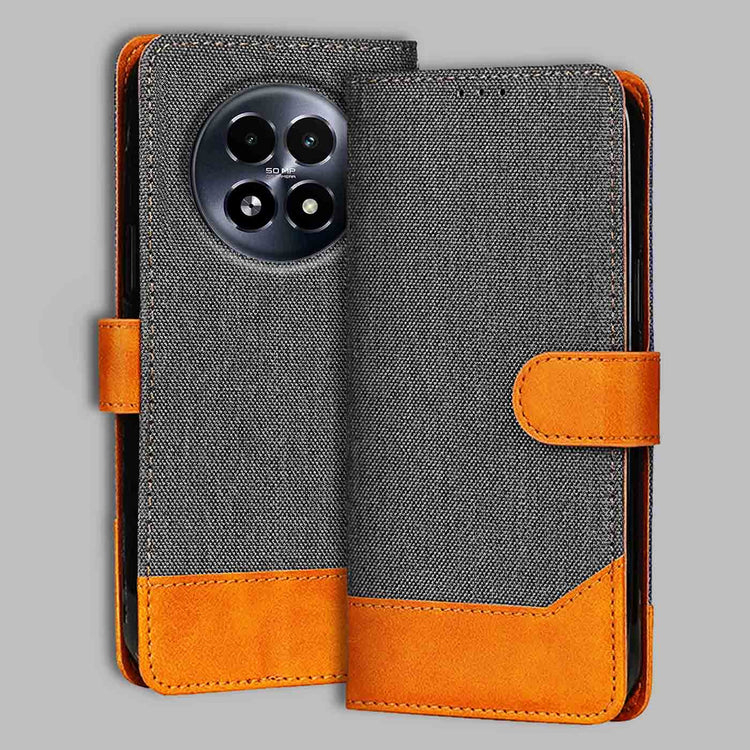 Realme 13 5G Dual Color Flip Cover | Denim & Leather - Grey
