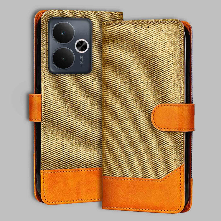 Realme 14T 5G Dual-Tone Denim & Leather Flip Cover - Light Brown