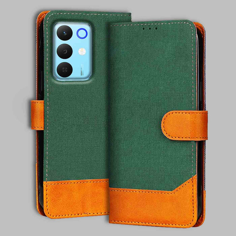 Realme 15X 5G Canvas & Suede Flip Cover | Dual Color | Stylish & Durable - Green