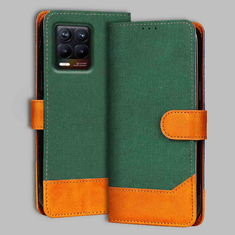 Realme 8 4G Canvas & Suede Flip Cover | Dual Color | Stylish & Durable - Green