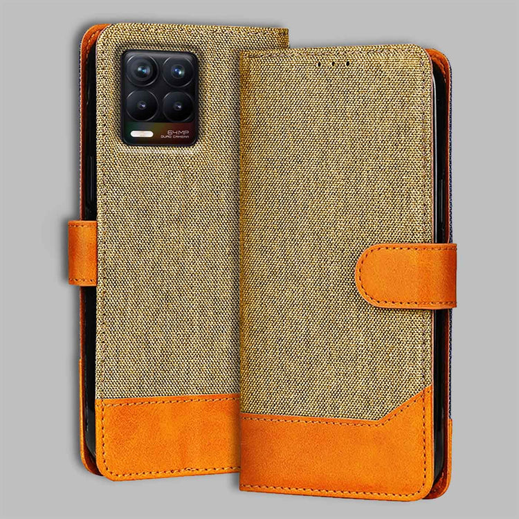 Realme 8 4G Dual Color Flip Cover | Denim & Leather - Light Brown