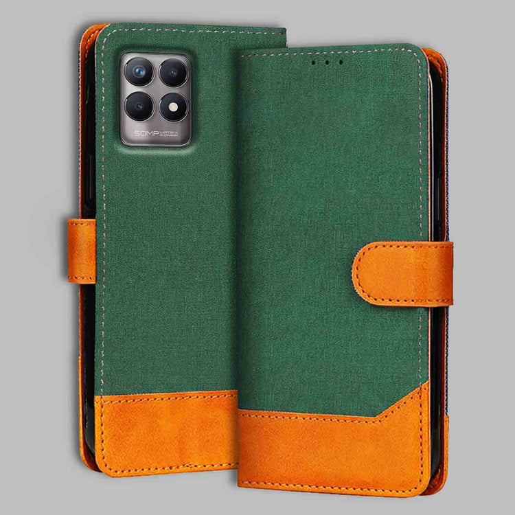 Realme 8i Canvas & Suede Flip Cover | Dual Color | Stylish & Durable - Green