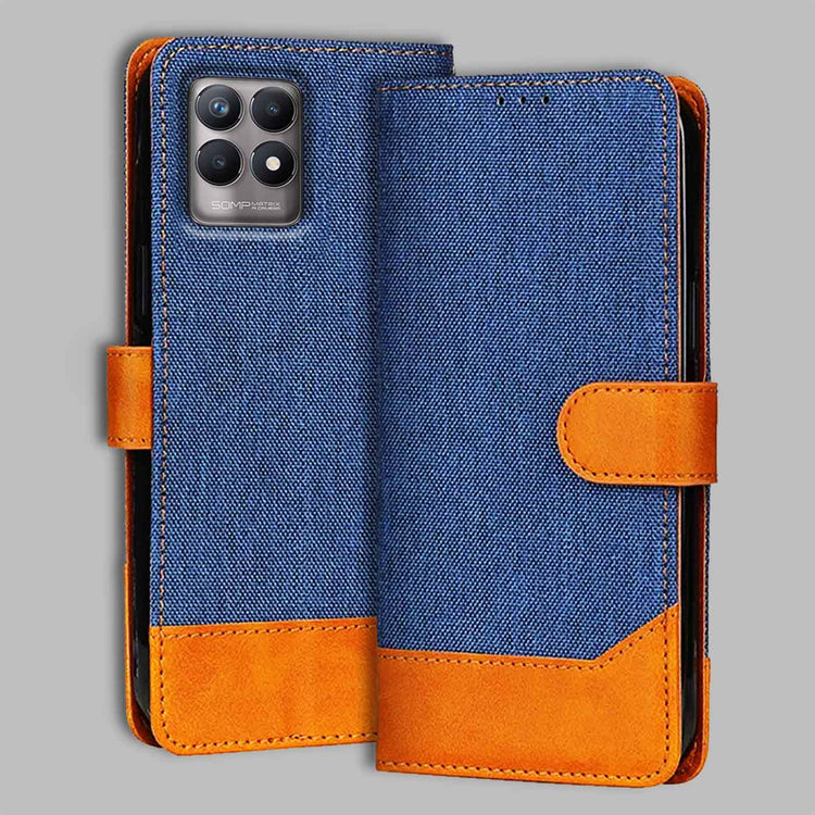 Realme 8i Dual-Tone Denim & Leather Flip Cover - Blue