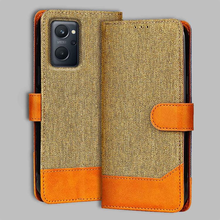 Realme 9i 4G Dual Color Flip Cover | Denim & Leather - Light Brown