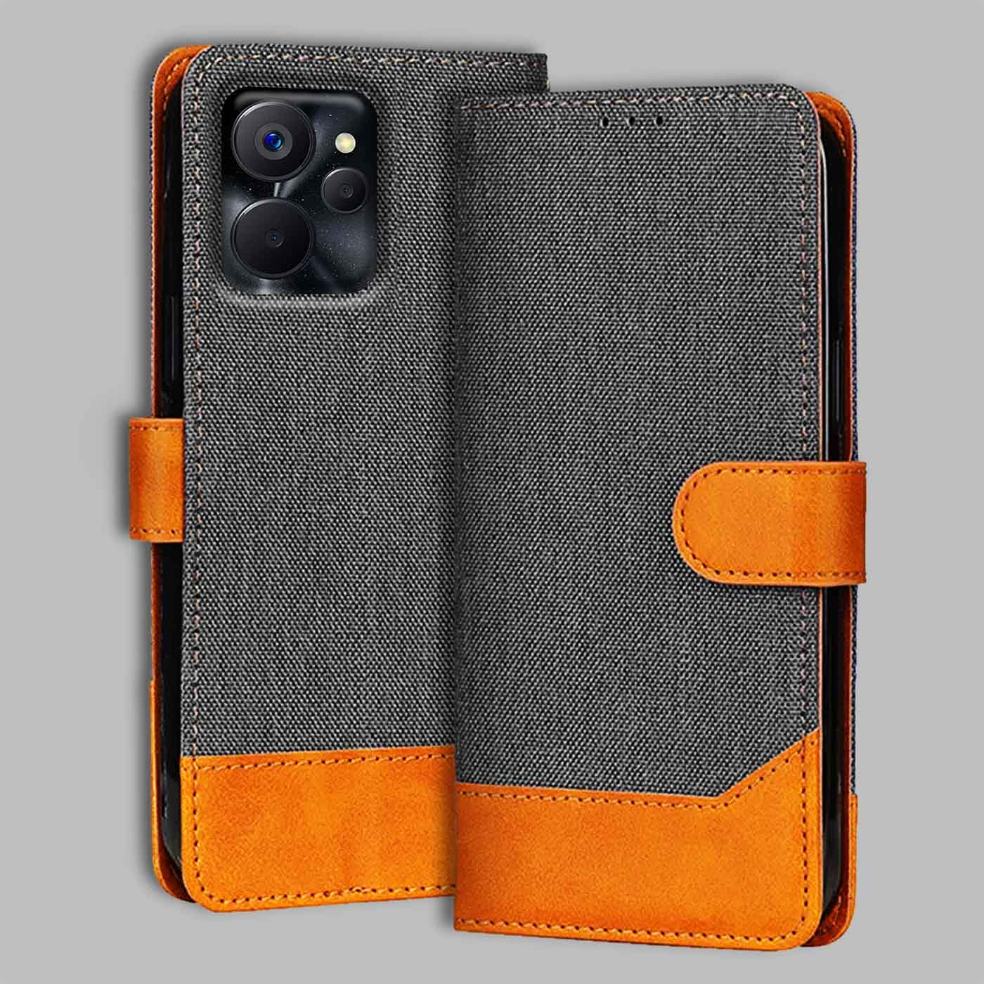 Realme 9i 5G Denim Leather Flip Cover | Dual Color | Sleek & Durable - Grey