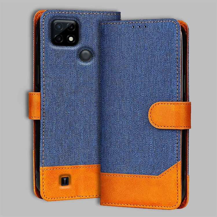 Realme C21 Dual-Tone Denim & Leather Flip Cover - Blue