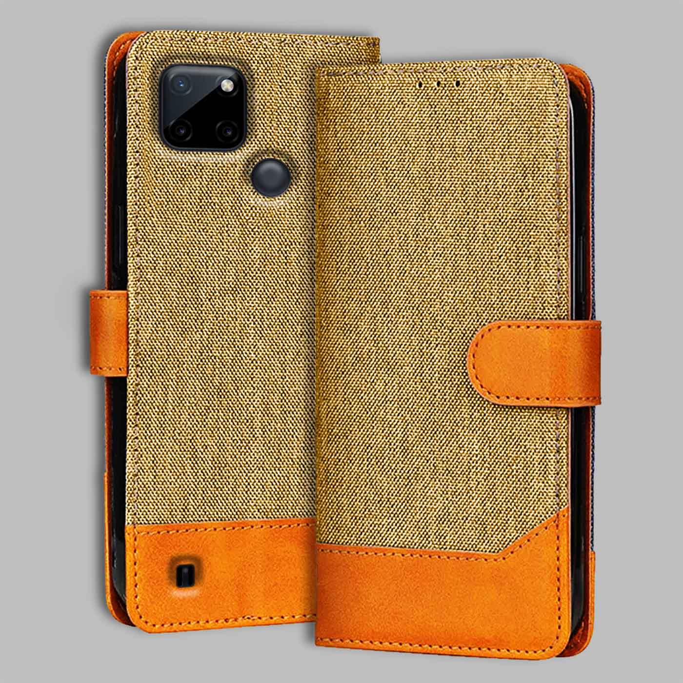 Realme C21Y Dual Color Flip Cover | Denim & Leather - Light Brown