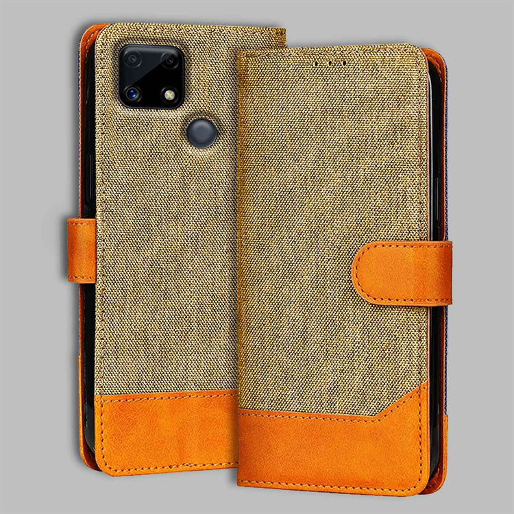 Realme C25 Dual Color Flip Cover | Denim & Leather - Light Brown