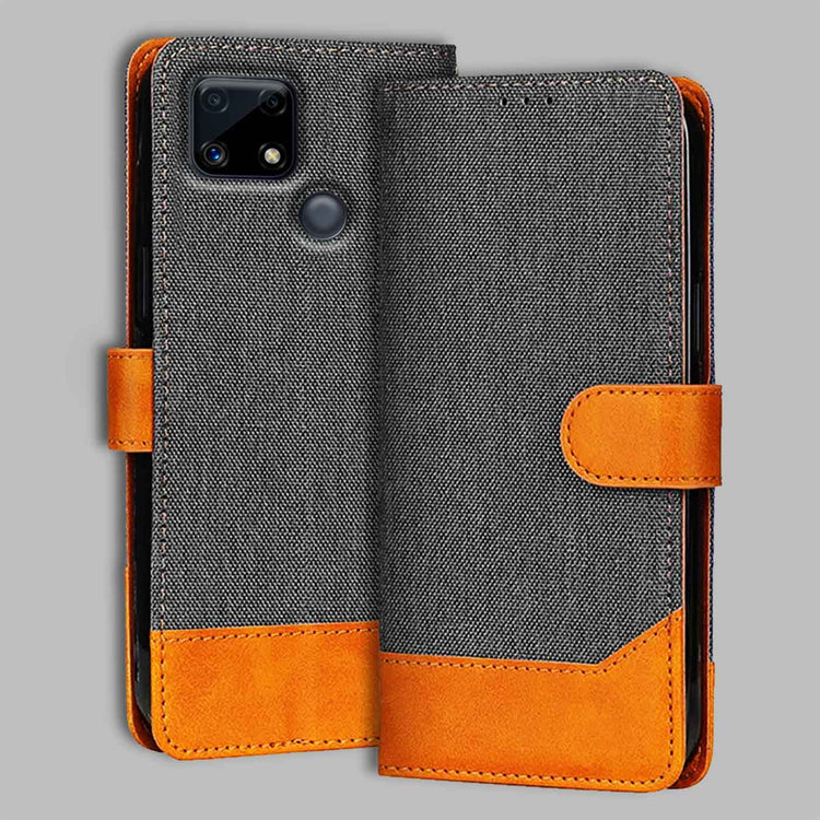 Realme C25S Denim Leather Flip Cover | Dual Color | Sleek & Durable - Grey