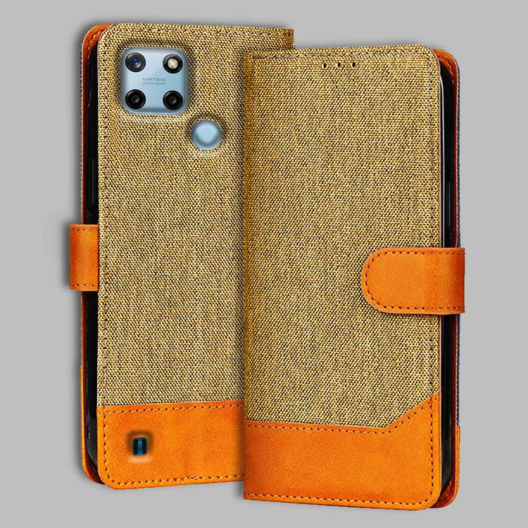 Realme C25Y Dual Color Flip Cover | Denim & Leather - Light Brown