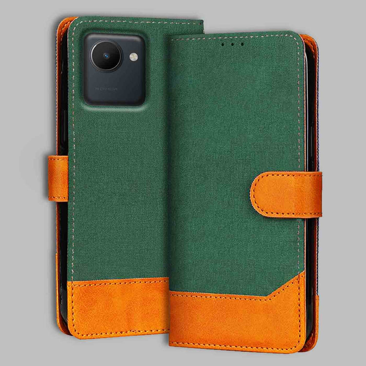 Realme C30 Canvas & Suede Flip Cover | Dual Color | Stylish & Durable - Green