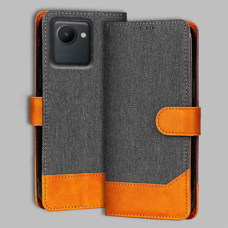 Realme C30 Denim Leather Flip Cover | Dual Color | Sleek & Durable - Grey