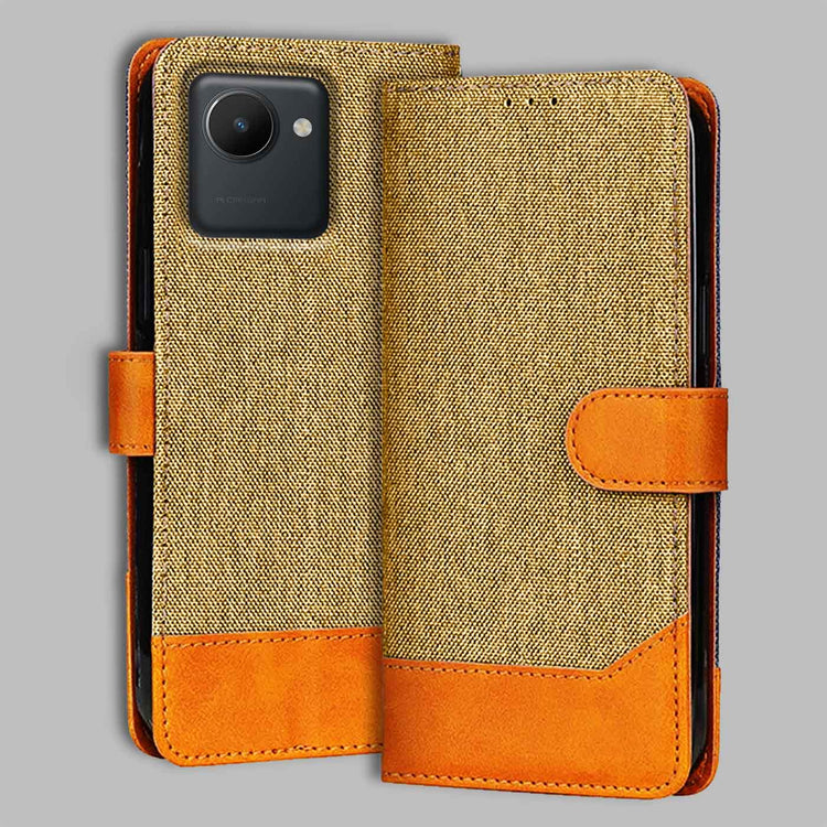 Realme C30 Dual Color Flip Cover | Denim & Leather - Light Brown