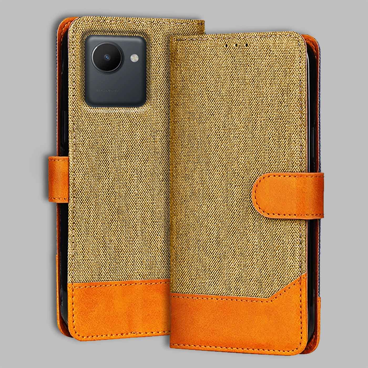 Realme C30S Dual Color Flip Cover | Denim & Leather - Light Brown