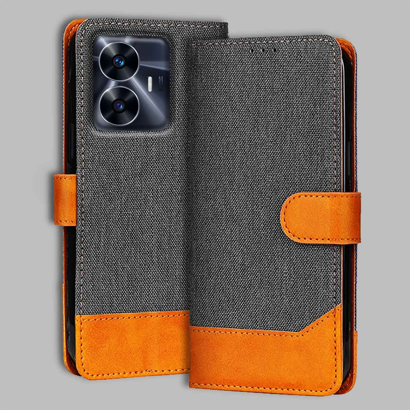 Realme C55 Denim Leather Flip Cover | Dual Color | Sleek & Durable - Grey