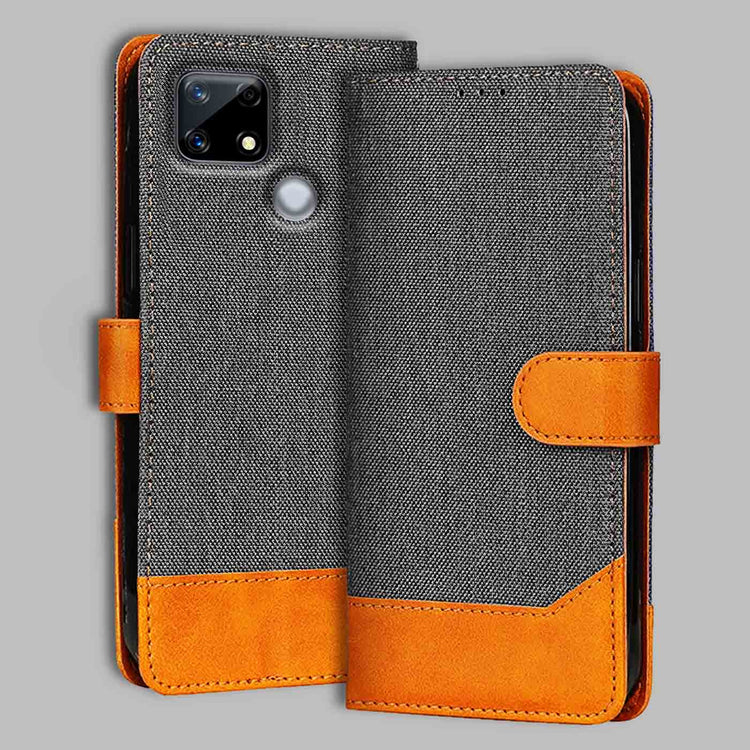 Realme Narzo 20 Denim Leather Flip Cover | Dual Color | Sleek & Durable - Grey