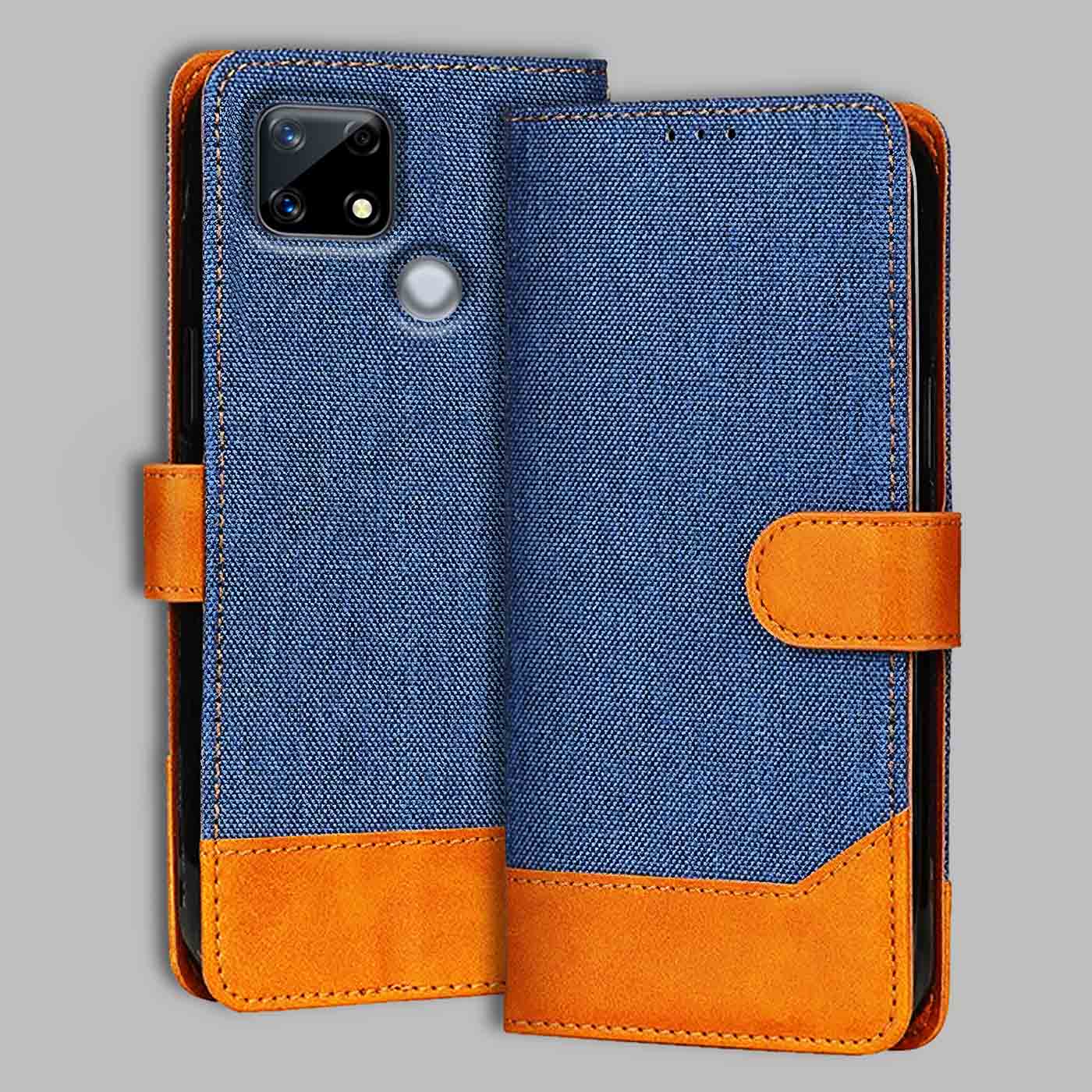 Upgrade your Realme Narzo 20 with this stylish & durable denim and vegan leather flip cover!