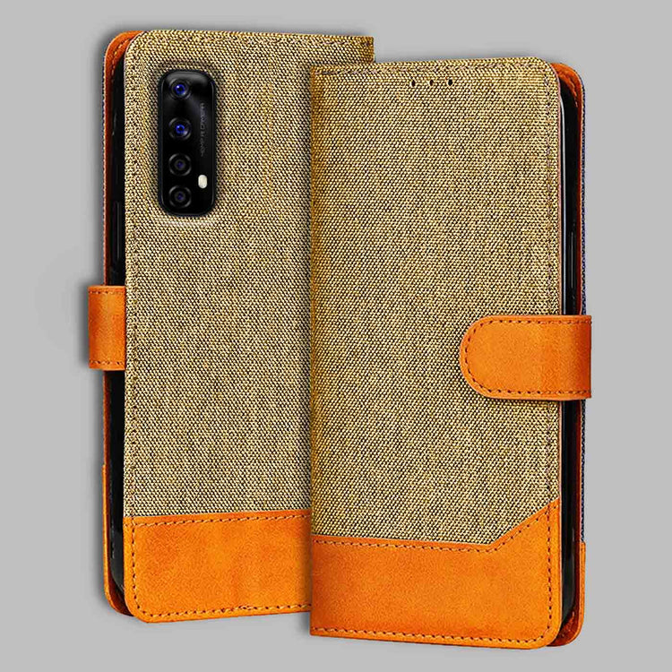 Realme Narzo 20 Pro Dual Color Flip Cover | Denim & Leather - Light Brown