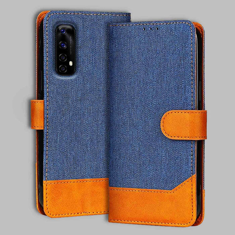 Realme Narzo 20 Pro Dual-Tone Denim & Leather Flip Cover - Blue