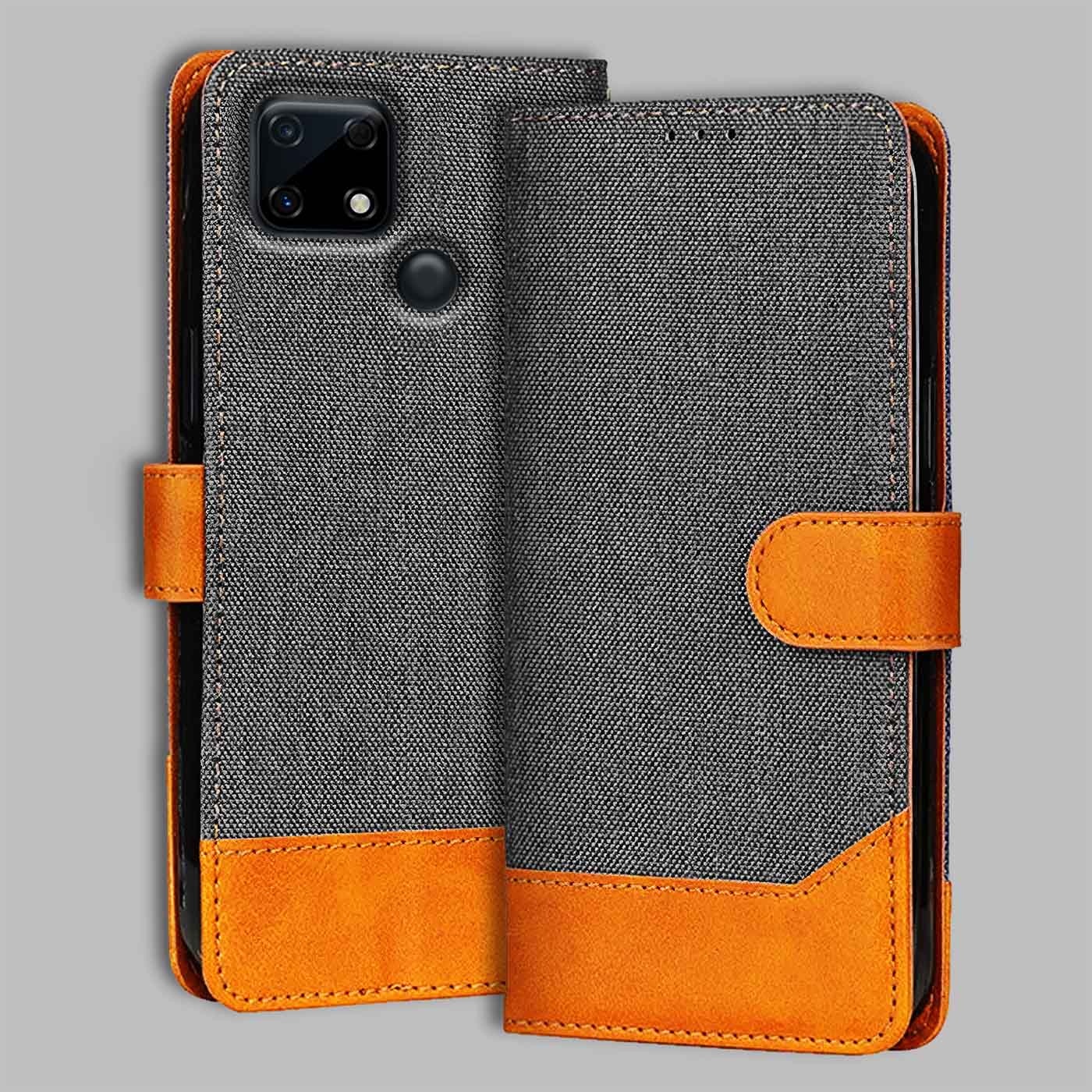 Realme Narzo 30A Denim Leather Flip Cover | Dual Color | Sleek & Durable - Grey