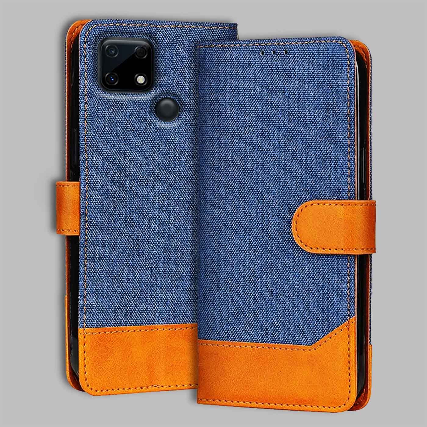 Realme Narzo 30A Dual-Tone Denim & Leather Flip Cover - Blue